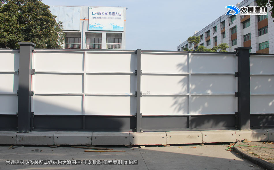 深圳市南山區西麗的城市改造項目工程使用了大通建材A類圍擋 鋼結構烤漆款+圍擋基礎墩,把施工現場的工地的外圍圍起來,在給施工現場建立一個可靠的施工環境的同時起到一定的美化、整潔、統一的作用…