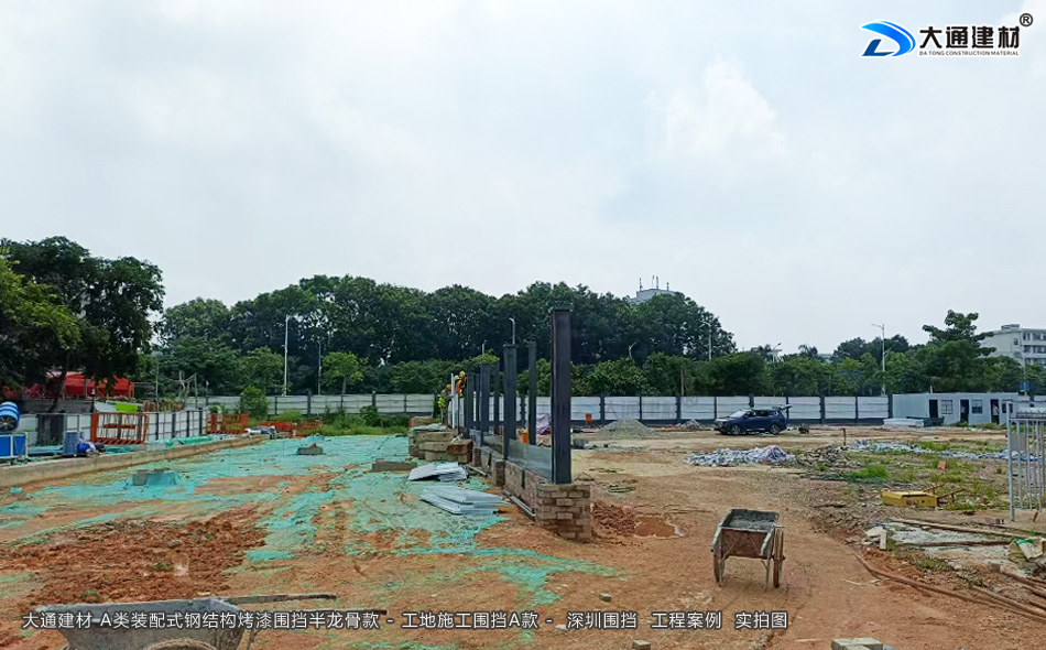 深圳大通建材A類裝配式鋼結構烤漆圍擋,主要由型鋼、方管、鋼板等鋼材構建框架,搭配鋼板等面板組成,即采用裝配式設計的特點,方便根據場地實際需求進行靈活組裝與拆卸,能多次重復使用,有效降低了工程成本,符合可持續發展的理念。