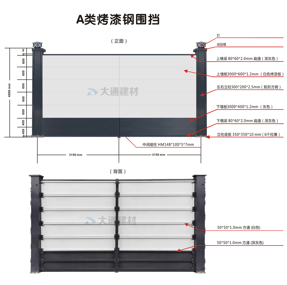 深圳市大通建材有限公司A類烤漆鋼圍擋-深圳標準定制款 廠家直銷,美觀大氣、穩固耐用;適用于市政建設施工、房地產項目施工、地鐵項目施工、管網改造等工程,大通建材為很多項目施工工程提供圍擋批發、圍擋安裝及圍擋廣告業務。