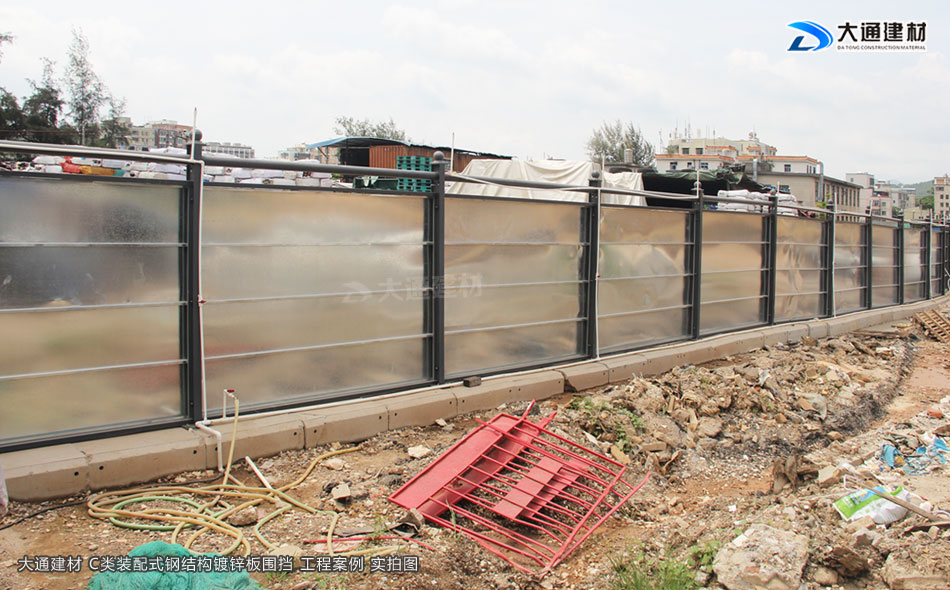 深圳市大通建材鍍鋅板鋼圍擋C款的圍擋墻板采用鍍鋅工藝,圍擋每一檔的長度都是3米,此工程項目使用的大通建材鍍鋅圍擋C款的高度是2.4米,這一款圍擋是帶立柱帽子的,符合市政標準。鍍鋅板鋼圍擋C價格與比圍擋烤漆C款相價格更便宜些,備受工程施工項目單位喜愛。
