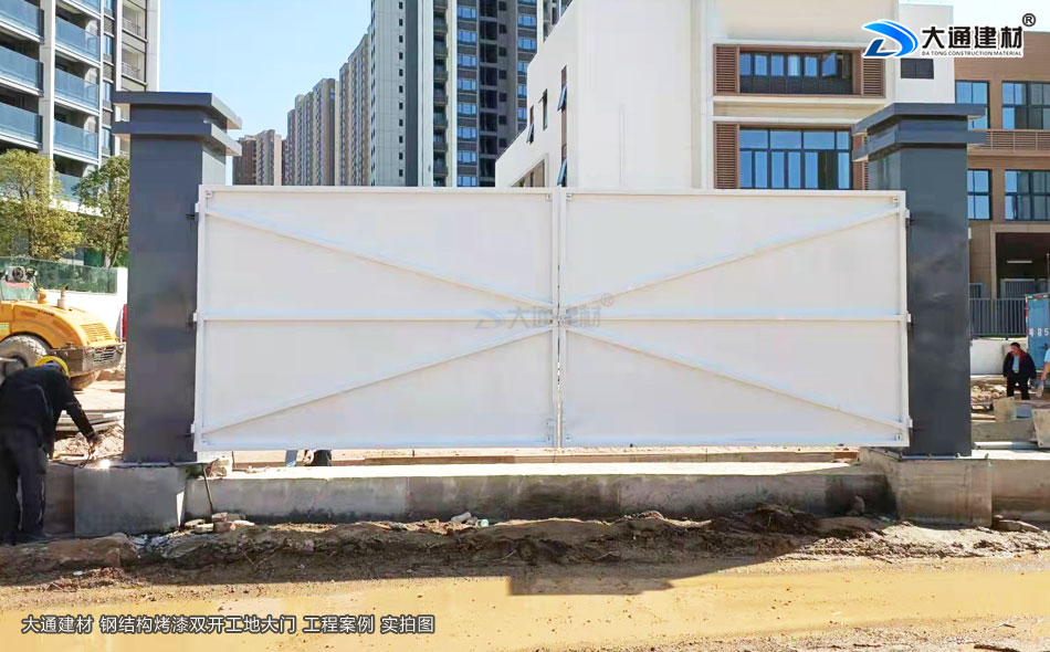 文章標題:項目施工現場新款烤漆工地大門安裝現場解析