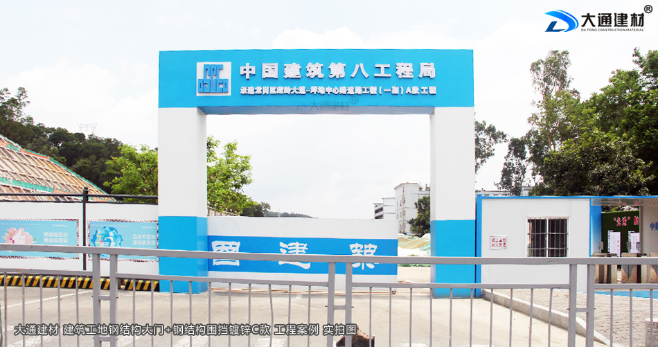 中國(guó)建筑八局集團(tuán)在深圳市龍崗區(qū)蛇嶺大道坪地中心路道路工程(一期)A段的工程項(xiàng)目,選用了深圳市大通建材生產(chǎn)的鋼結(jié)構(gòu)工地大門為項(xiàng)目部大門。