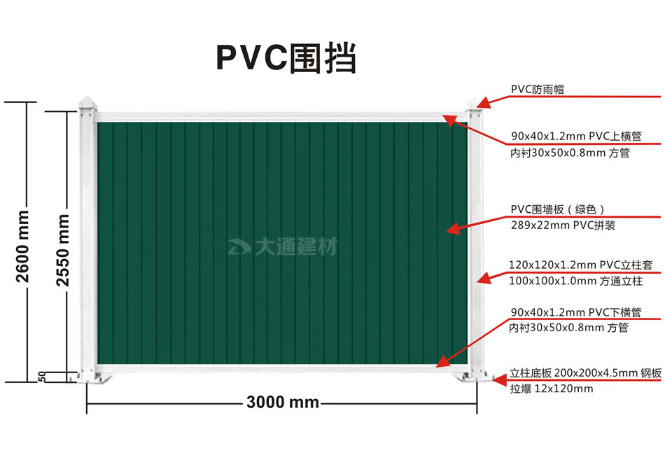 上圖展示的是大通白色PVC圍擋 規(guī)格參數(shù)圖