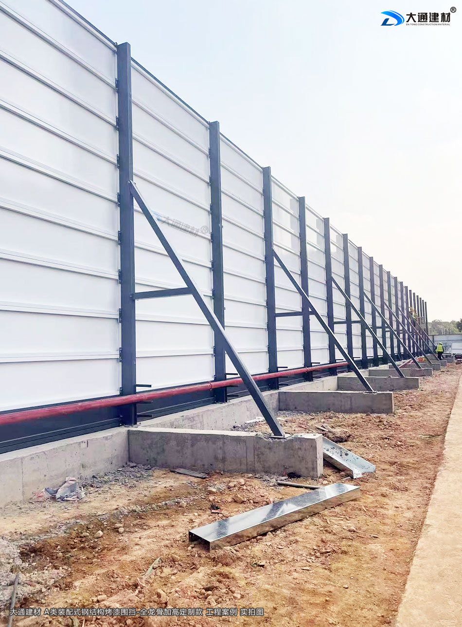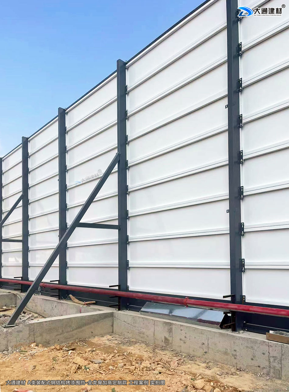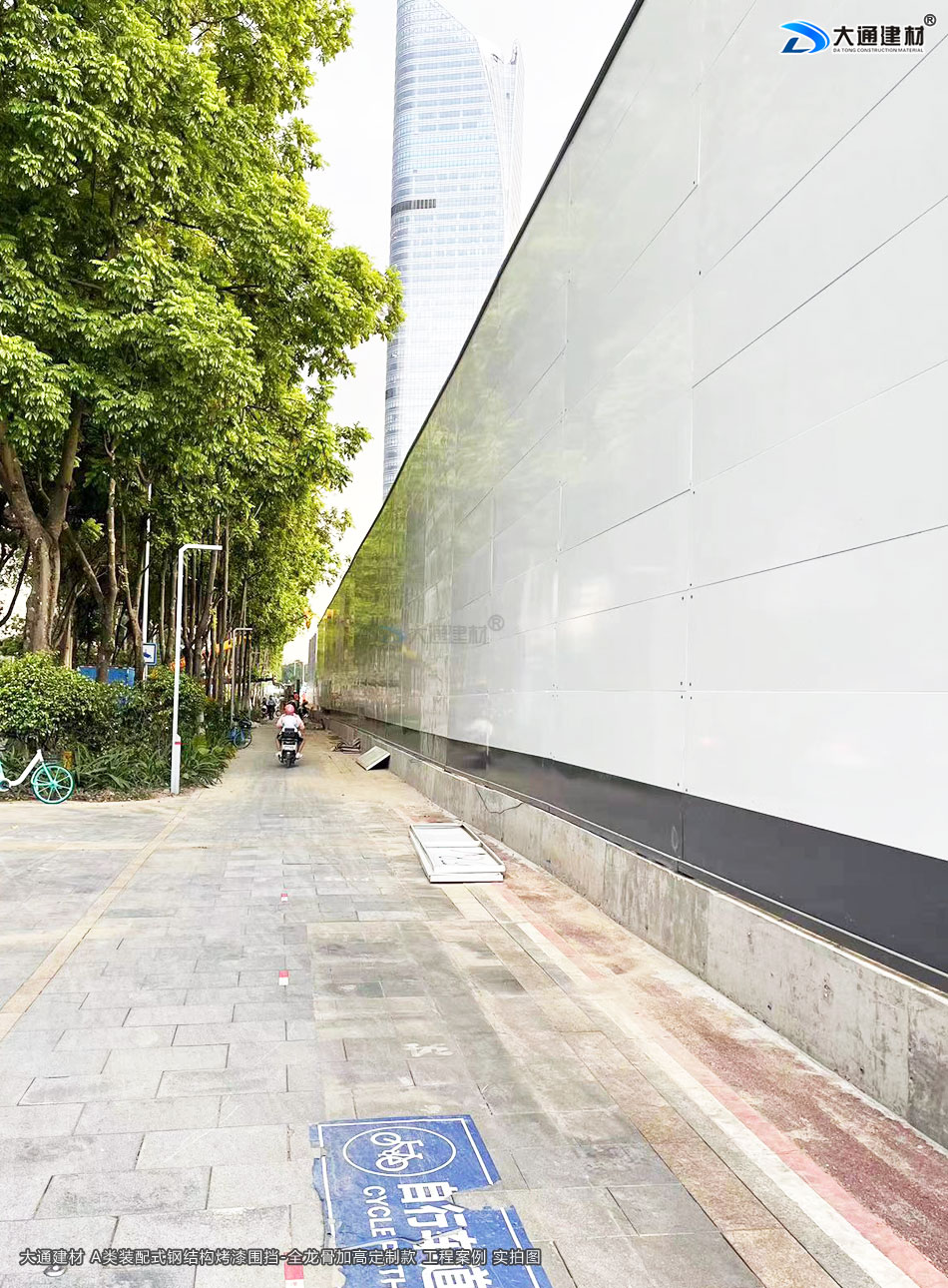深圳大通建材生產的A類裝配式烤漆鋼圍擋全龍骨6米高定制款 適用于各種項目工程:如市政工程建設施工、房地產項目建設施工、地鐵修建項目施工、管網改造、小區改造、城市建設、道路修建施工等工程修施工外圍使用