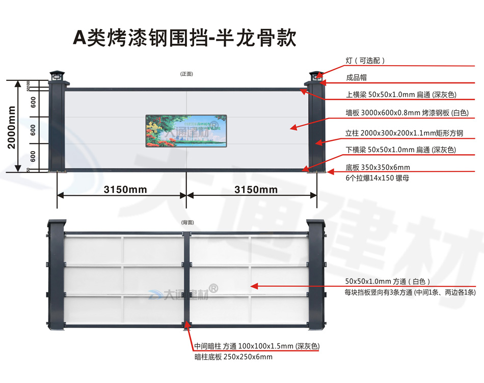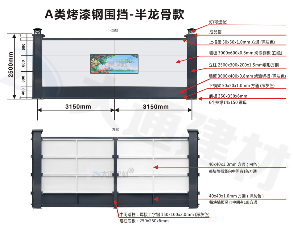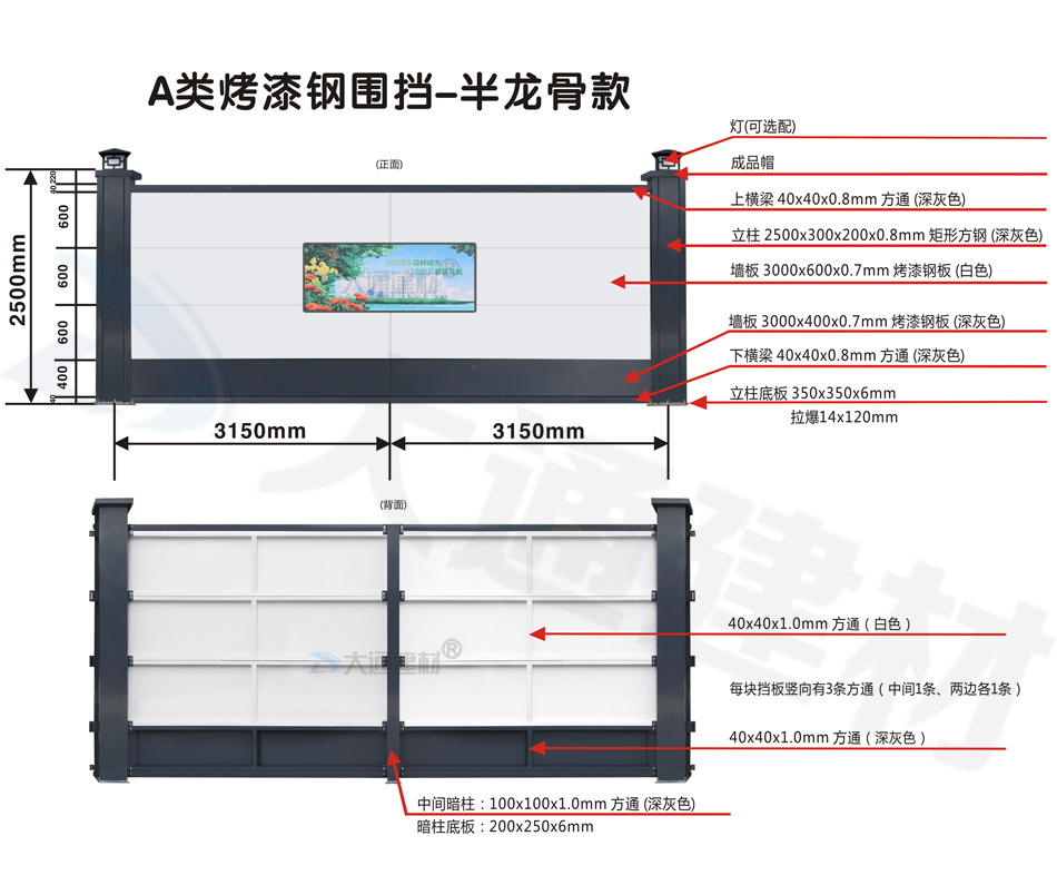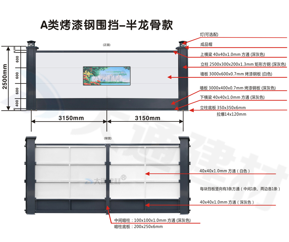 大通建材A類鋼結構烤漆圍擋半/無龍骨款適用于市政建設施工、房地產項目施工、地鐵項目施工、管網改造、小區改造、城市建設、道路施工等工程使用