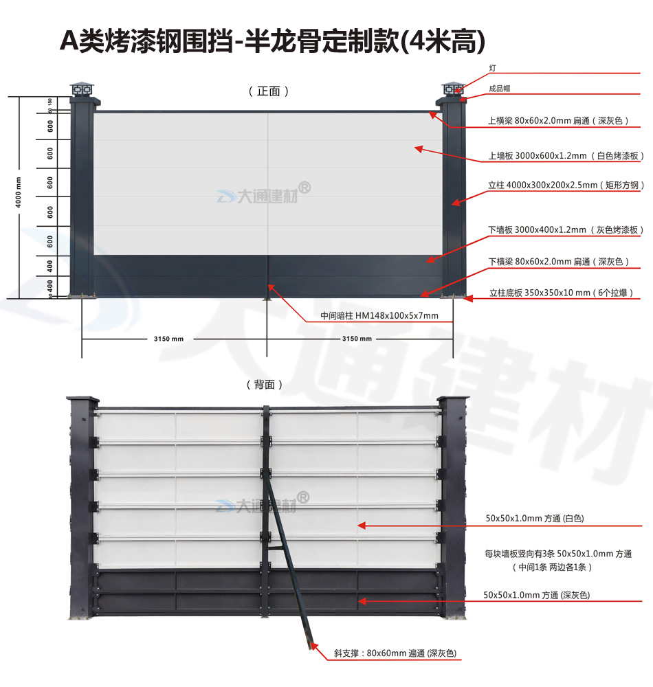 大通建材 A類(lèi)烤漆鋼圍擋-半/無(wú)龍骨4米高定制款 生產(chǎn)廠家